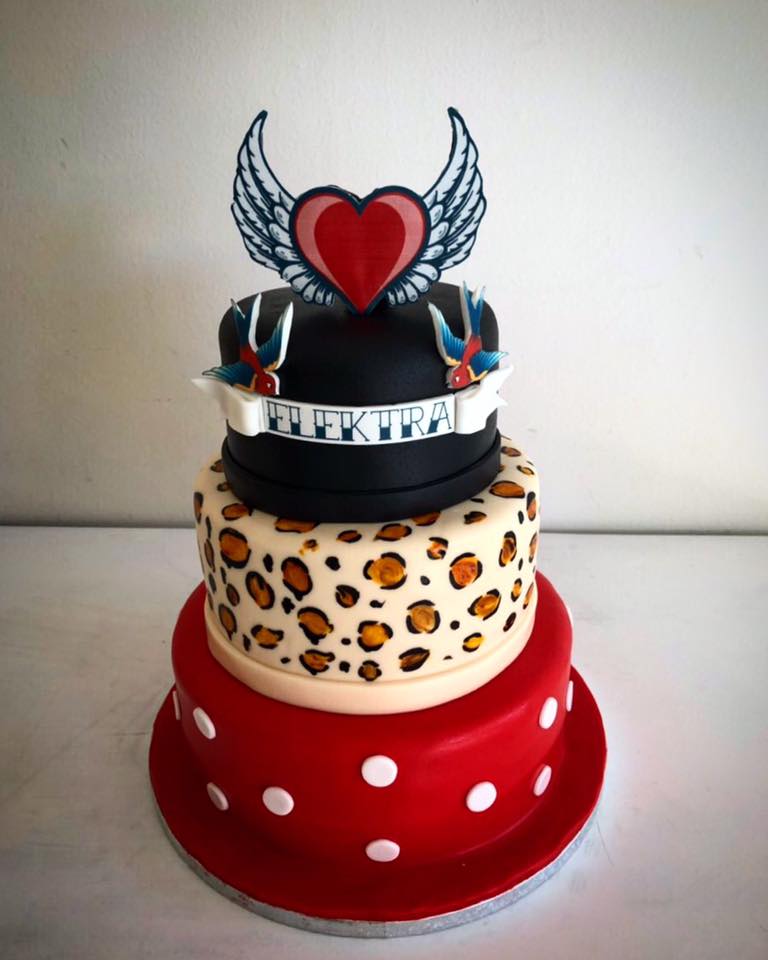Η ηθοποιός επέλεξε μία τούρτα (κεντρική φωτό) σε στυλ rock & roll, πάνω στην οποία έγραψε (σε αγγλικούς χαρακτήρες) και το όνομα που θα δώσει στην κόρη της – Ηλέκτρα – και εμείς όχι μόνο βρήκαμε από πού την αγόρασε, αλλά σας παρουσιάζουμε και μερικές ακόμα πρωτότυπες ιδέες για τις δικές σας τούρτες.