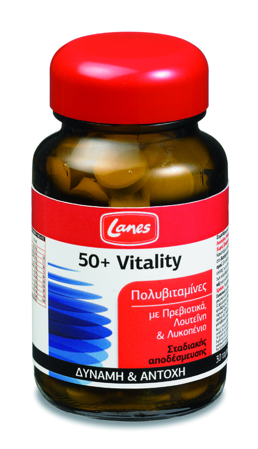 - Πολυβιταμίνες 50+ Vitality: Η κάθε ηλικία έχει τη χάρη της… έχει όμως και μοναδικές ανάγκες για τη διατήρηση της καλής υγείας του οργανισμού. Οι πολυβιταμίνες 50+ Vitality, στοχευμένες στις ανάγκες αυτές, προσφέρουν τόνωση και ευεξία λόγω των 12 βιταμινών και 10 μετάλλων που περιέχουν, σε ποσότητες προσαρμοσμένες για σένα και τις ιδιαίτερες ανάγκες του οργανισμού άνω των 50. Παράλληλα, η παρουσία προβιοτικών ενισχύει την πεπτική λειτουργία, ενώ το λυκοπένιο και η λουτεΐνη προσφέρουν σημαντική αντιοξειδωτική δράση. Οι πολυβιταμίνες 50+ Vitality είναι διαθέσιμες σε μορφή ταμπλέτας & αναβράζουσας ταμπλέτας.