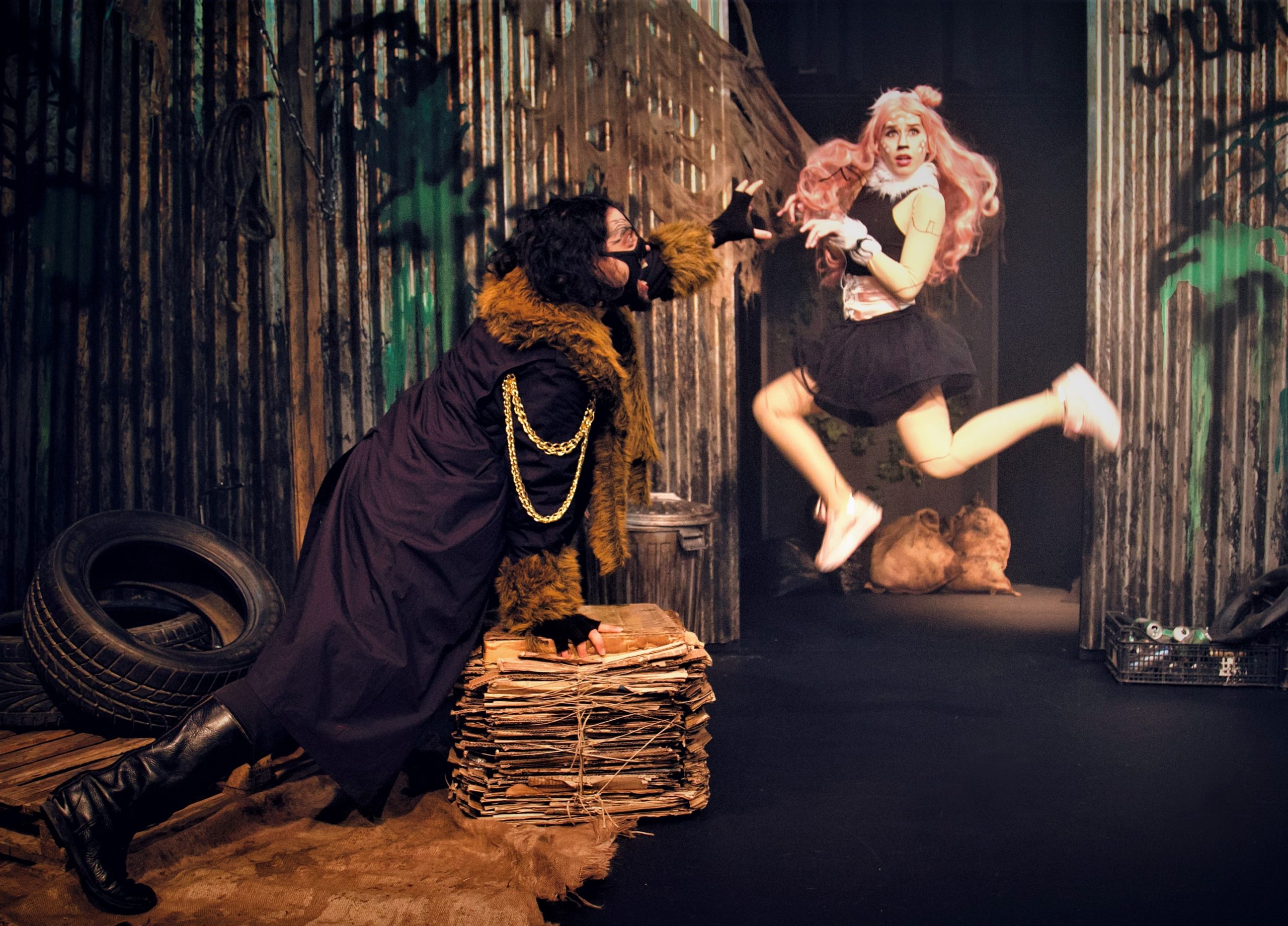 H σκηνογραφία της Πολυτίμης Μαχαίρα, καθώς και η ενδυματολογική της προσέγγιση βοηθούν λειτουργικά το έργο και τον θεατή να μεταφερθεί σ’ έναν κόσμο, όπου πλέκεται το παραμύθι με το σκληρό αστικό τοπίο, αναδεικνύοντας τον εσωτερικό κόσμο του κάθε ήρωα. Την τελική πινελιά στην όλη σύνθεση δίνει και το ειδικό μακιγιάζ.